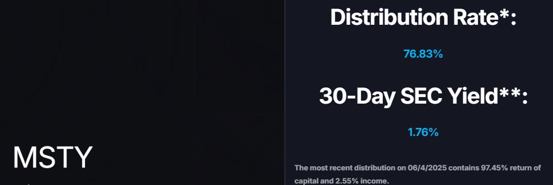 ETFs como o MSTY apresentam dividend yields de 60%, 80% ou mais. Parece incrível. Mas muitas vezes esses dividendos vêm à custa do próprio fundo: estás a receber “rendimento” que na prática é return of capital. O NAV desce mês após mês. Recebes o bolo… e ficas sem bolo.